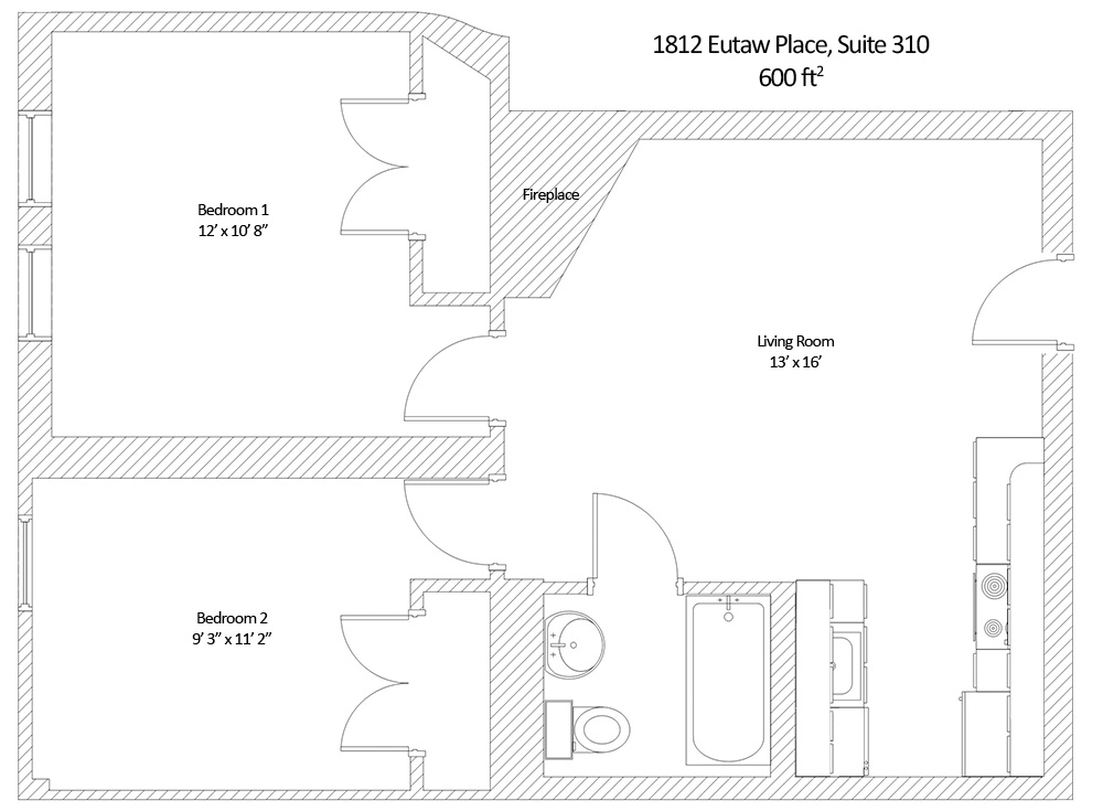 This spacious and bright apartment in a historic Eutaw Place mansion has been beautifully renovated with all the modern conveniences. The original details, such as the historic moldings and high ceilings, have been preserved, while the kitchen and bathroom have been completely updated with granite countertops and new appliances. The hardwood floors in the bedrooms add warmth and character, and the large windows let in plenty of natural light. In addition, the apartment has a decorative fireplace in the living room, a wonderful centerpiece for decorating or mounting a wall TV. This apartment is perfect for someone who wants to live in a luxurious historic home with all the modern amenities and a touch of old-fashioned charm.